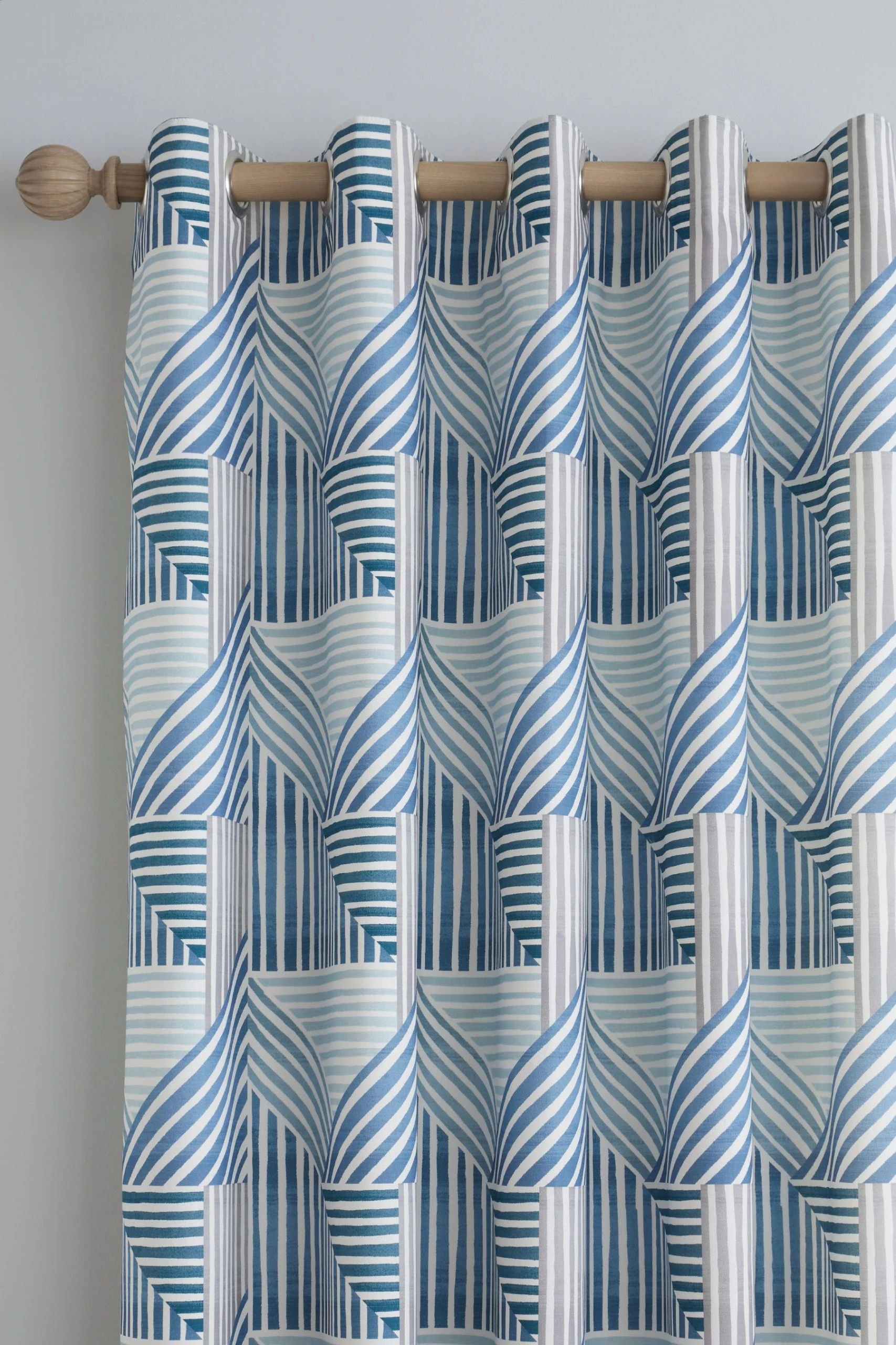 Shimmering, bold geometrics create visual magic in this fun contemporary curtain design. The curtains are 100% printed cotton, and are fully lined with eyelets – a great way to add pattern and colour to any modern room.