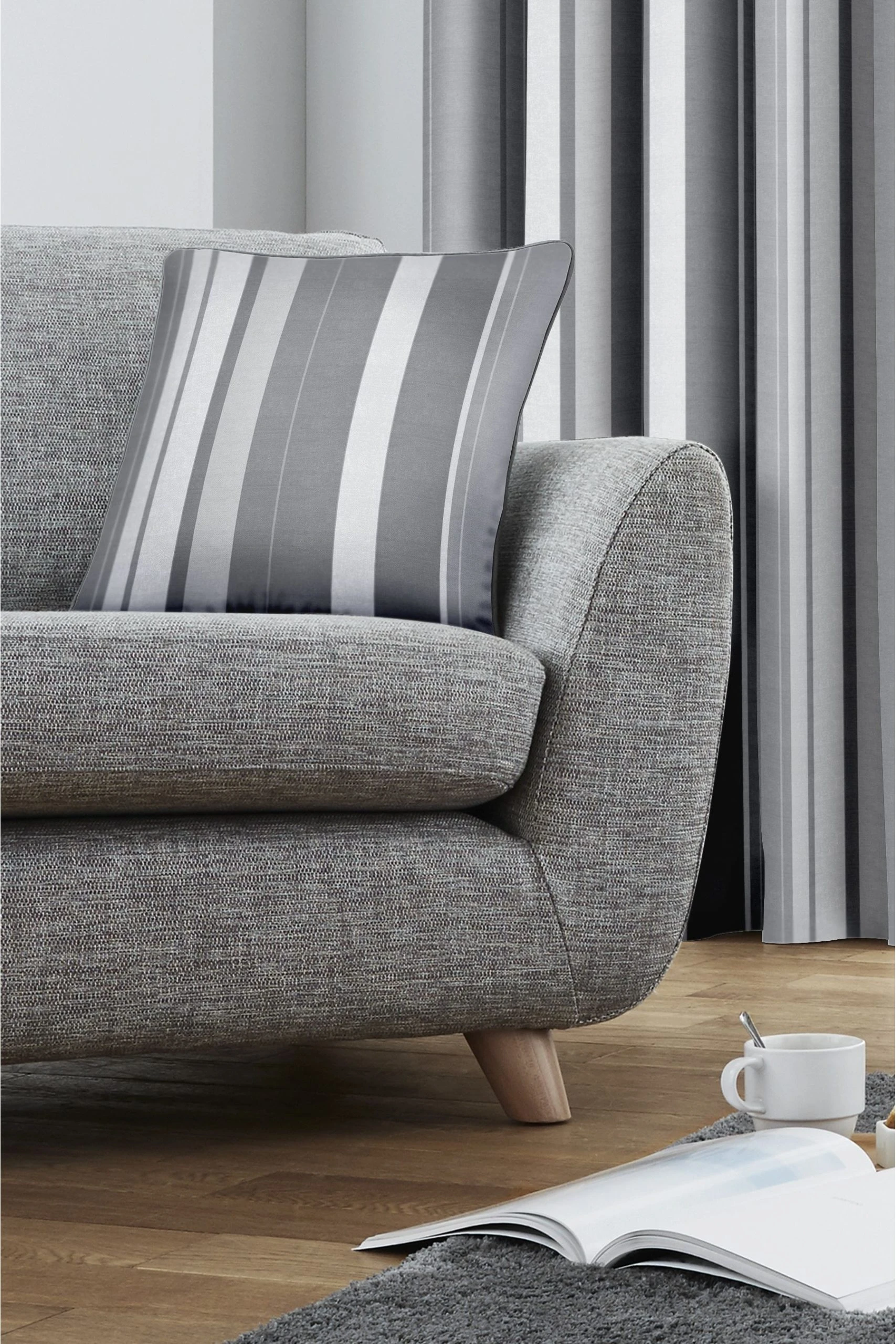 This smart contemporary curtain is defined by its clean vertical stripes a perfectly balanced design in subtle greens, browns and neutral shades. Made from 100% cotton lined with light-filtering microfibre, these curtains are ready to hang thanks to the modern eyelet heading.