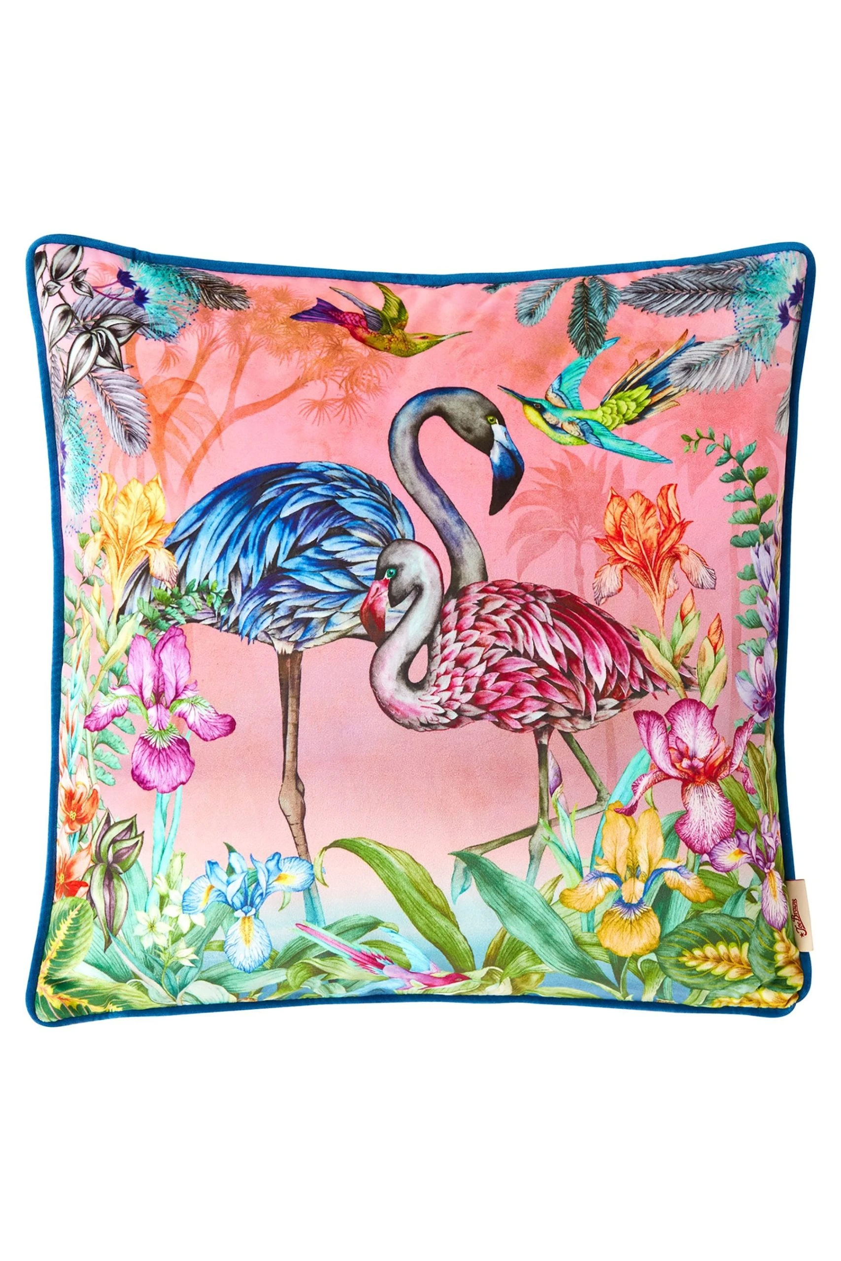 Bring a touch of class to your sofa with this exquisite velvet cushion. Combining bold colours with an intricate flamingo design, it’ll add an elegant charm to any room. Sit it alongside our Brilliant Floral Boudoir Cushion to make a statement with your decor. Front is printed using hand painted artwork.