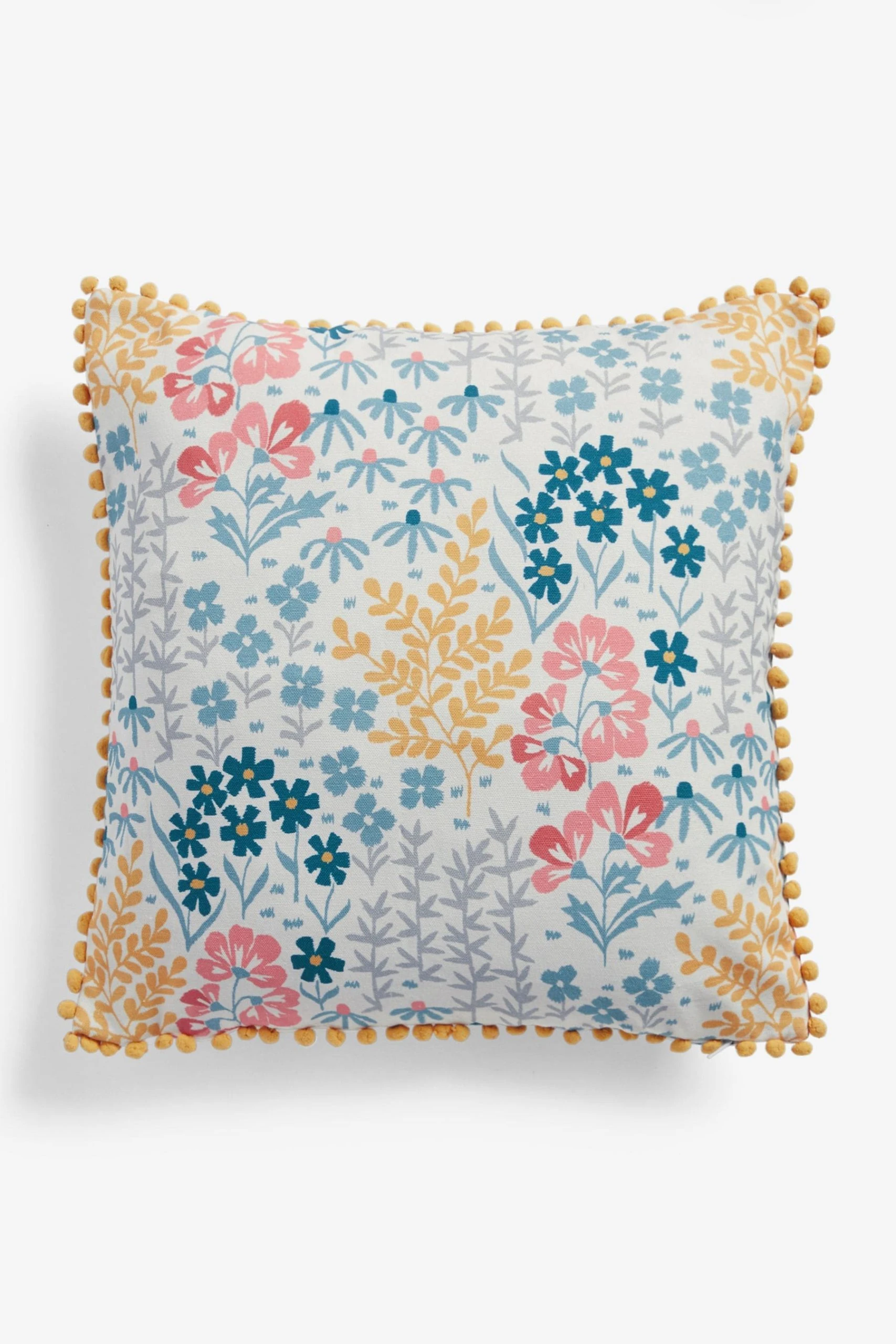 Add a touch of spring to your home with this bright floral cushion. With a beautiful design, complimenting colours and a bobble trim it’s great to be the centrepiece for your cushions.