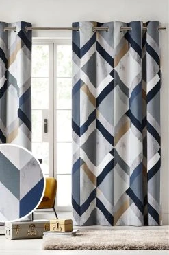 The bigger the better. These curtains are sure to impress with the bold overscale geo print. Simple silver brushed eyelets make them easy to pair with your existing or chosen curtain pole.