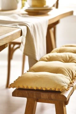 Beautiful cotton seat and bench pads with pom-pom edge detailing. Available in a variety of colours.