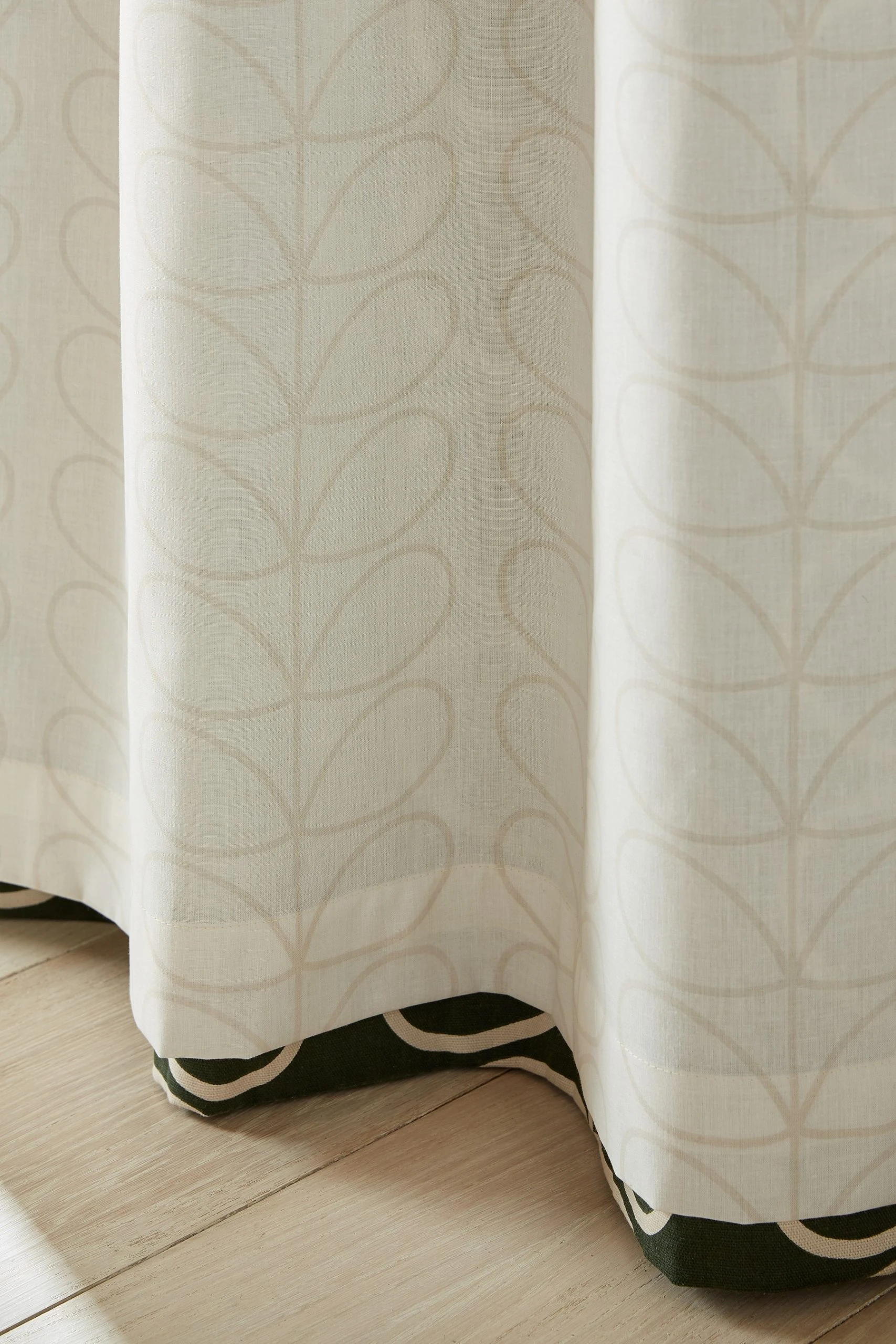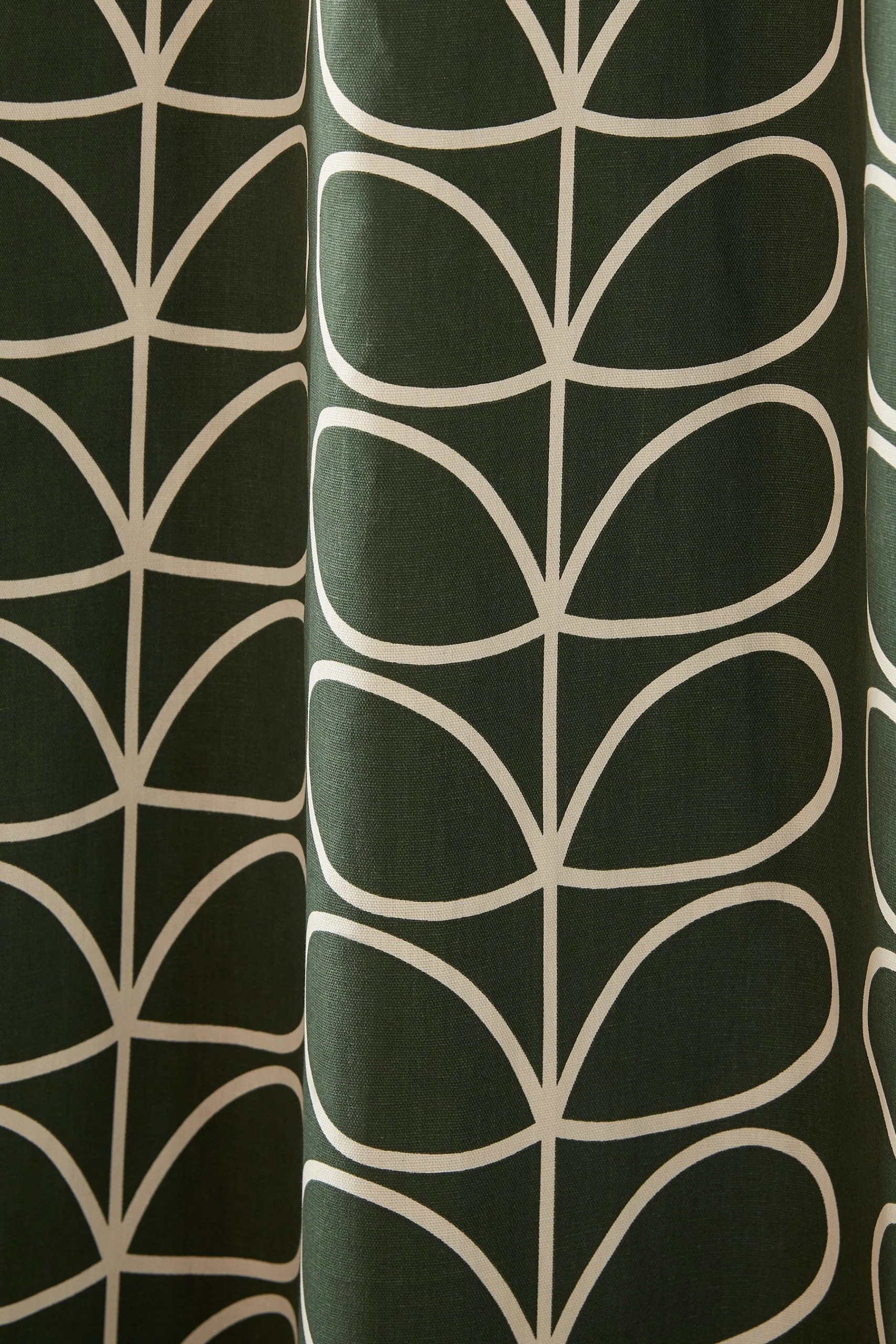 Bring the outdoors in with the bold, modern graphic of Orla Kiely’s signature Linear Stem ready made curtain, recoloured for Autumn in a rich, evergreen shade. With eyelet header and printed lining featuring Orla Kiely’s Linear Stem print in neutral cream shades. Co-ordinating cushion available.